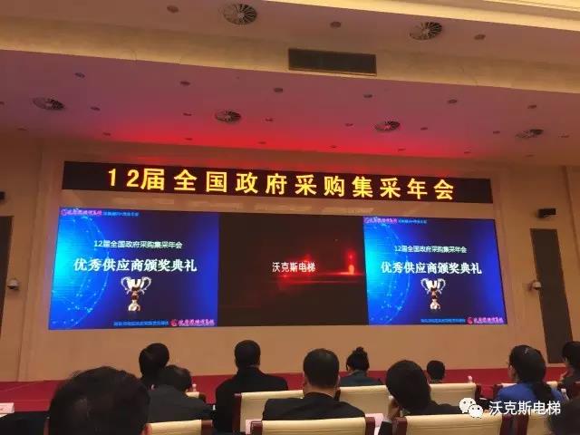 据哈尔滨电梯公司消息,1月5日,第12届全国政府采购集采年会在北京隆重举行。沃克斯电梯(中国)有限公司凭借着行业内领先的制造工艺、产品质量和售后服务,荣获“2016年度全国政府采购十佳供应商”殊荣。