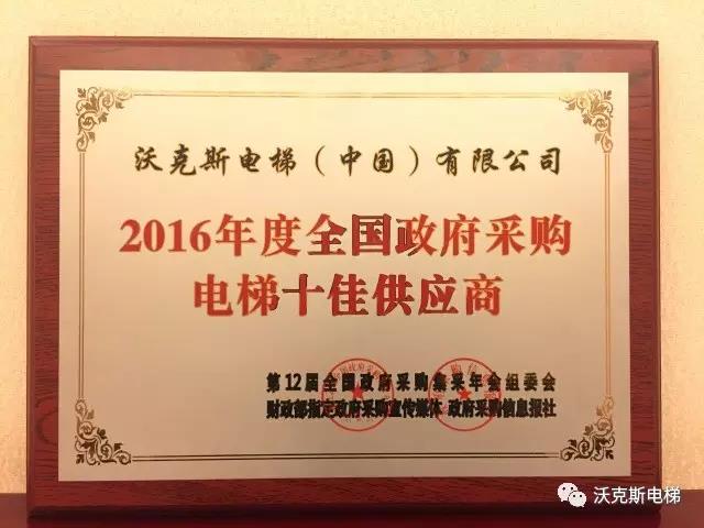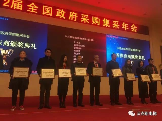沃克斯电梯荣获“2016年度全国政府采购十佳电梯